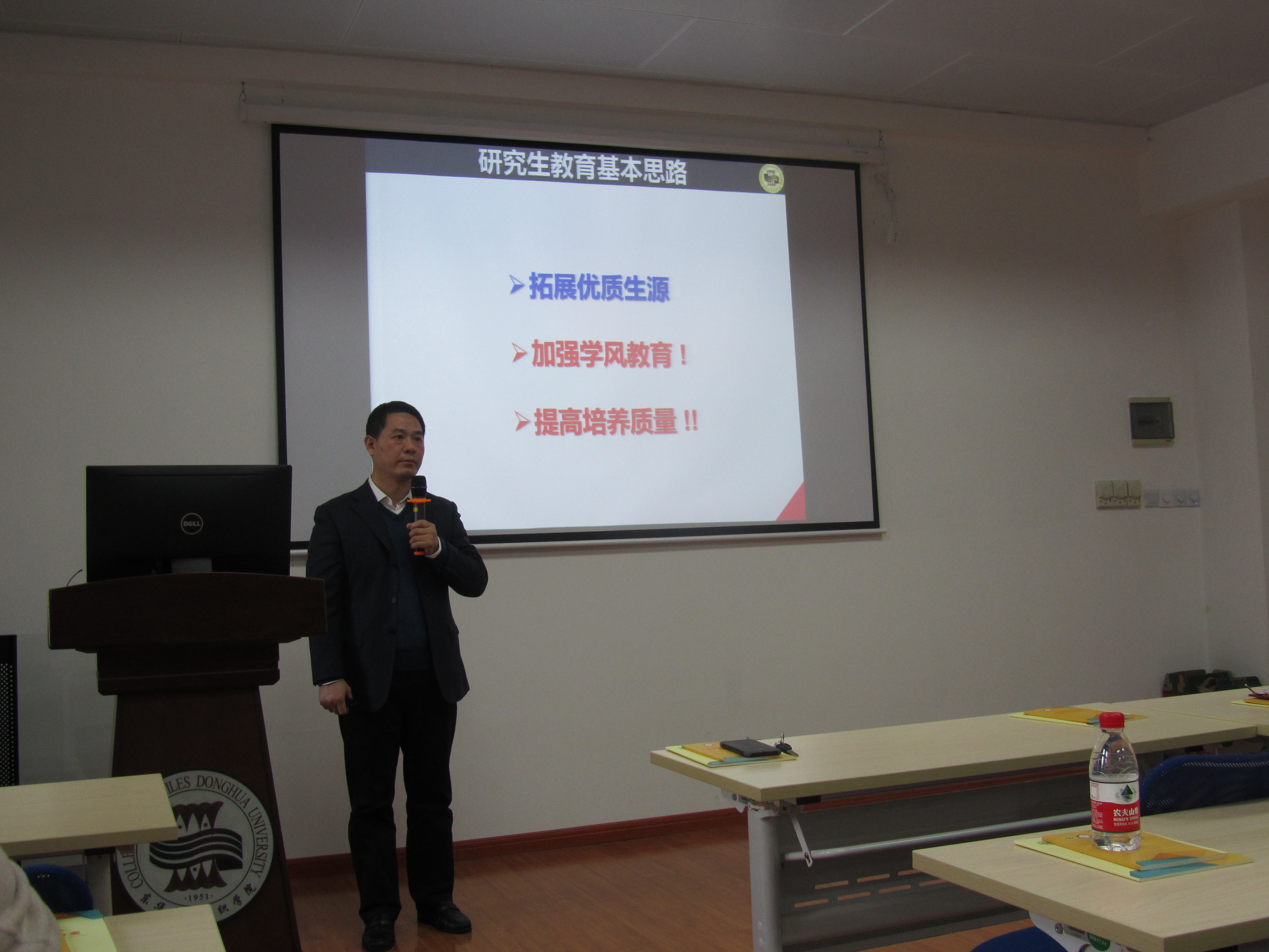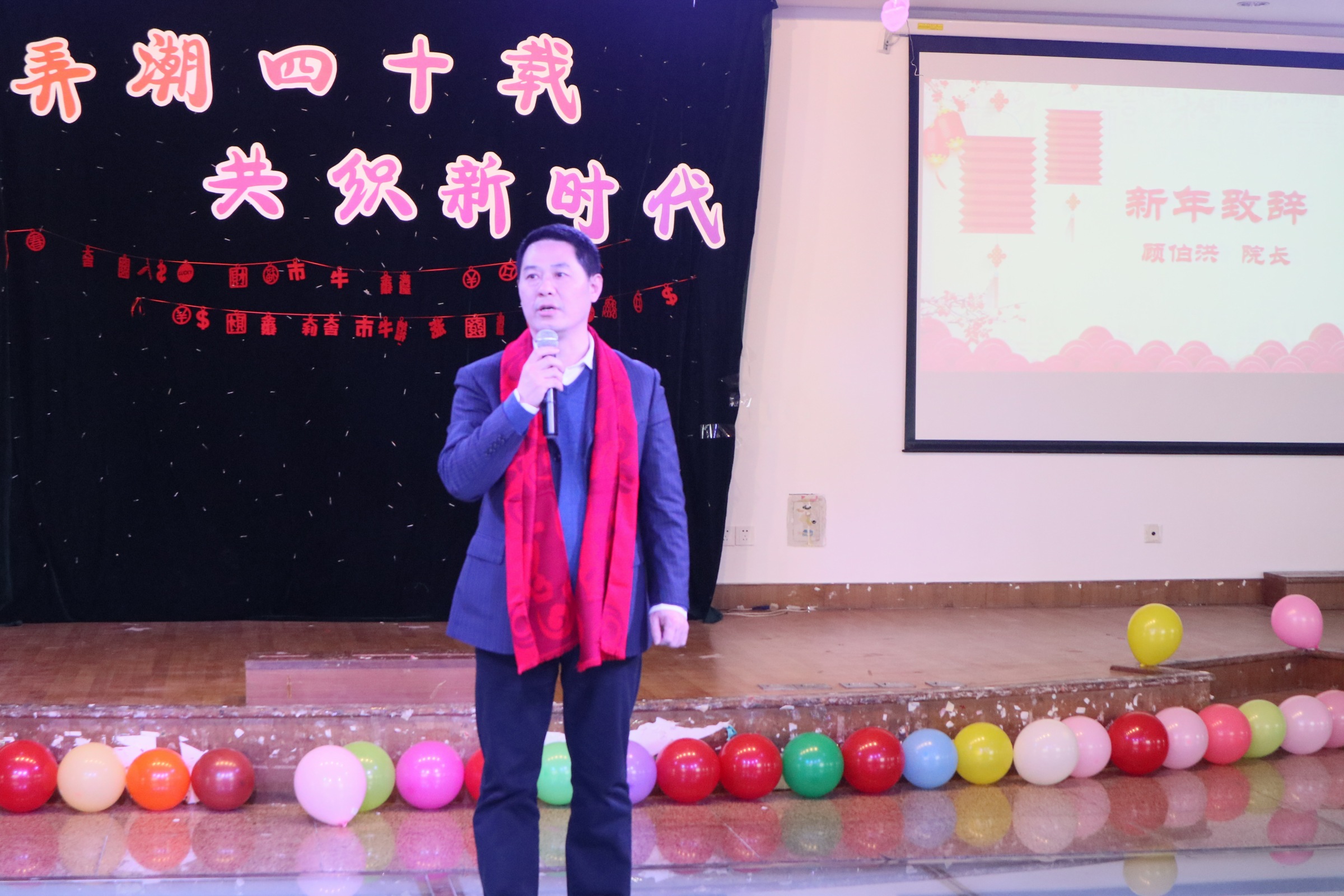 首先, 由顾伯洪院长进行新年致辞。他代表欲漫涩 领导班子,对全体老师一年来的辛勤工作表示衷心感谢!并希望全院老师能够在今天的联欢会中消除一年来的疲劳,为新一年的工作做好充分准备。