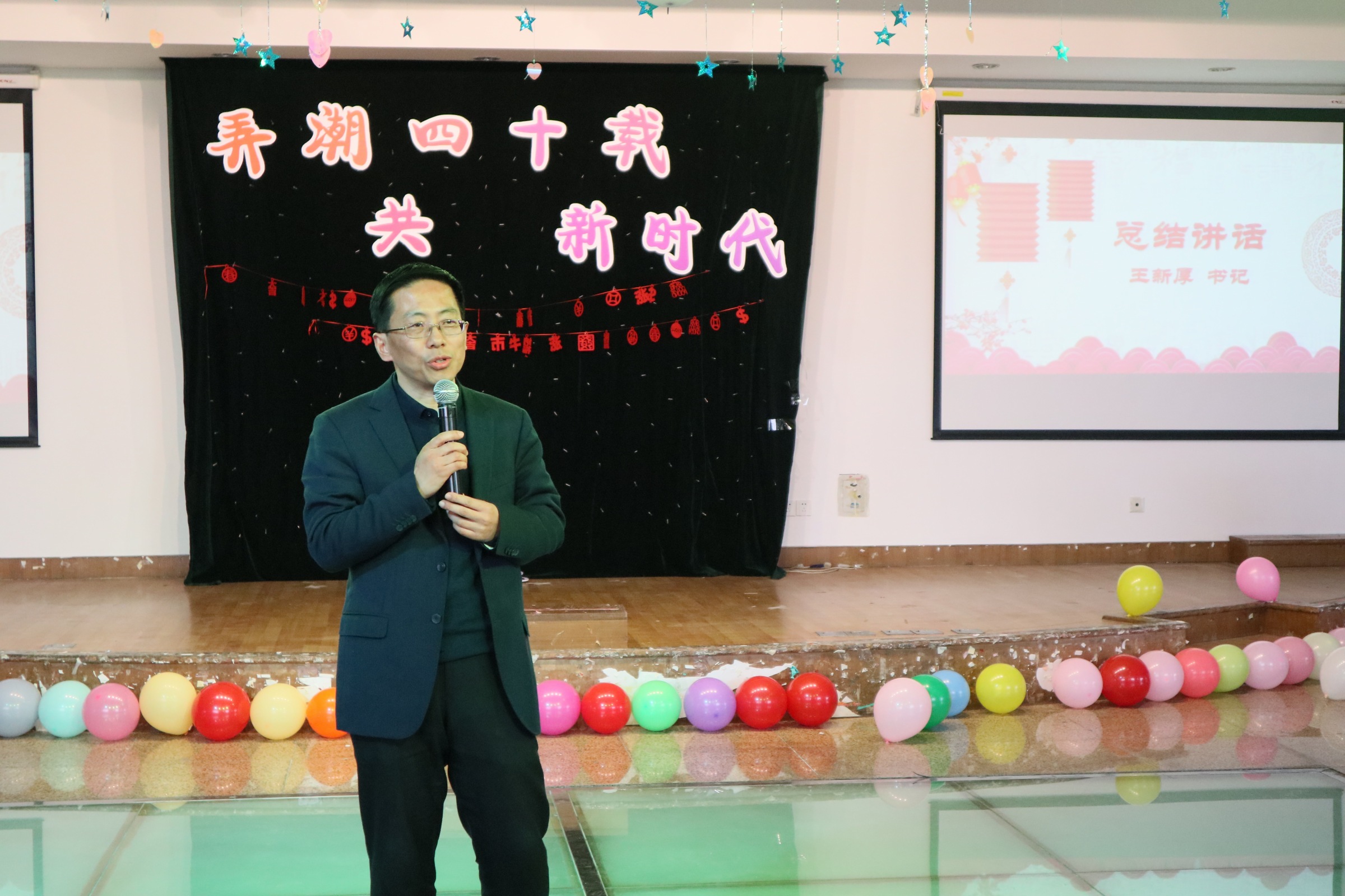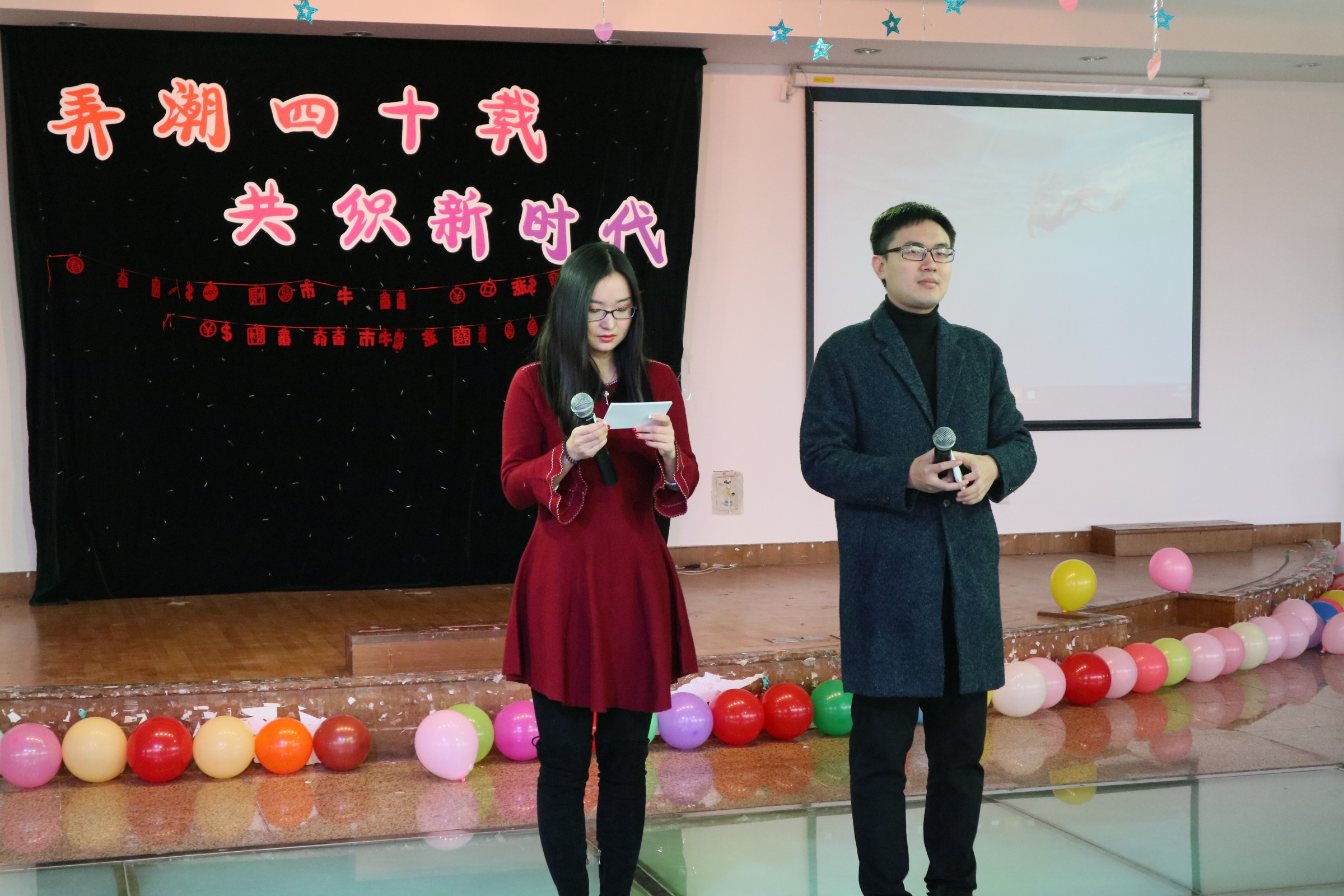 欲漫涩 年终总结大会结束后,下午一点在兰笋厅举行了一年一度的欲漫涩 迎新春联欢会,本次联欢会的主题是“弄潮四十载,共织新时代”。