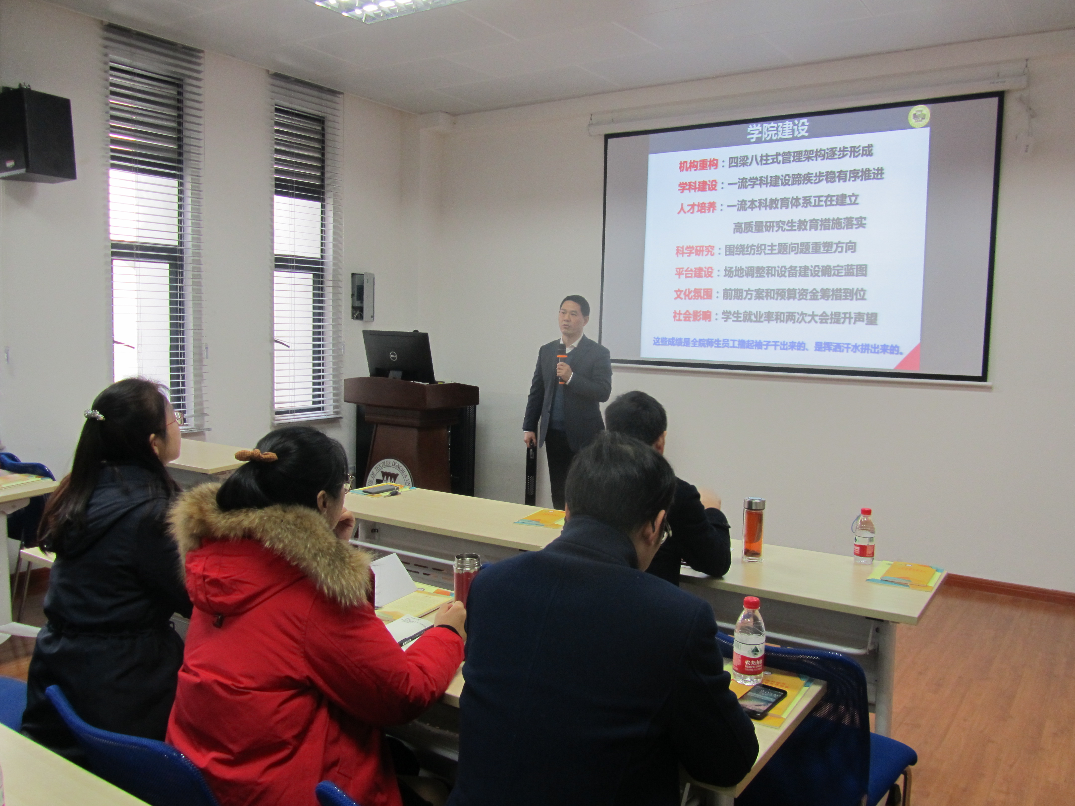 本次会议的内容是由顾伯洪院长总结本学期欲漫涩 的主要工作,他从欲漫涩 的党建工作、“四梁八柱”管理架构、师资队伍规模、教师取得荣誉、学科建设完成情况、学科经费现状、本科生教学工作、研究生教学工作、科研产出、平台建设、文化建设、社会影响、国际合作、下学期展望等方面进行阐述。顾伯洪院长充分肯定了欲漫涩 这一年以来欲漫涩 全体师生取得的良好成绩,并对下一年欲漫涩 发展提出了具体的规划和展望。