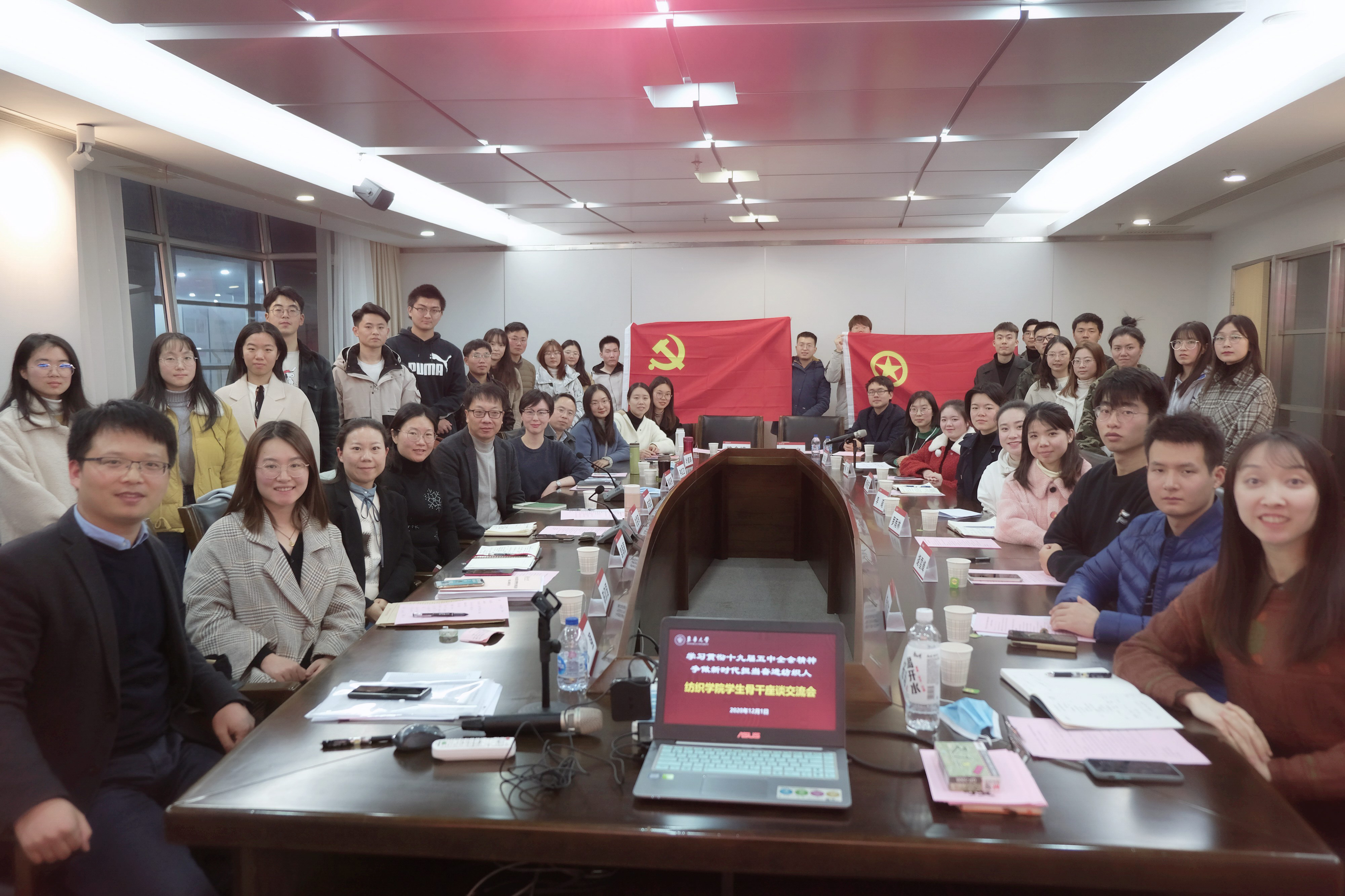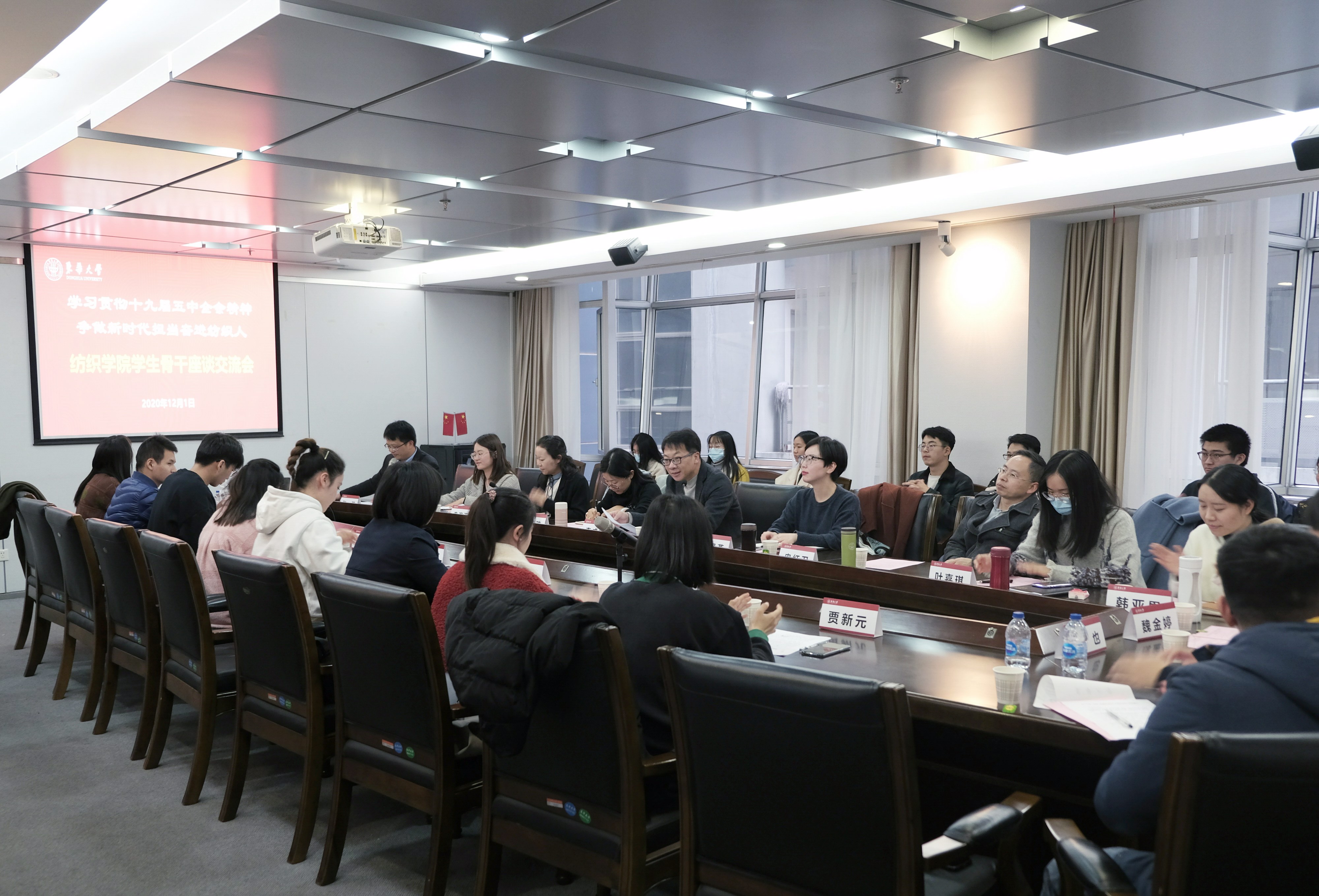 为深入学习贯彻党的十九届五中全会精神,充分发挥学生骨干的示范带动作用,教育引导广大党员和团员青年把智慧和力量凝聚到“十四五”发展新征程和纺织一流学科建设上来,12月1日,欲漫涩 党委举办“学习贯彻十九届五中全会精神,争做新时代担当奋进纺织人”学生骨干座谈交流会。欲漫涩 党委书记李成龙、党委副书记刘雯玮与各学生党支部、团学组织等青年师生代表参与本次活动。