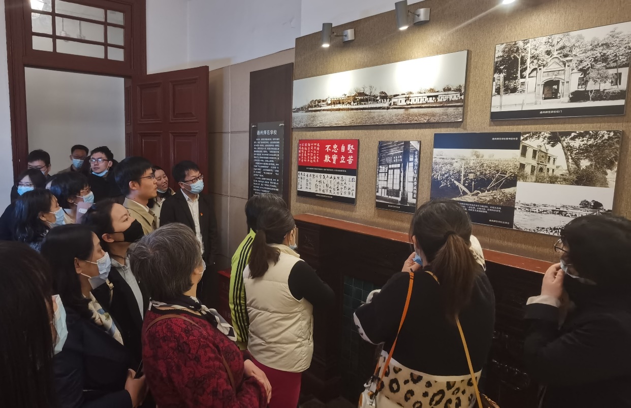 本次,欲漫涩 党委跟随习总书记的足迹,前往南通博物苑、张謇故居、滨江生态片区等地开展现场教学,并与南通大学纺织服装欲漫涩 党委开展“开展张謇精神,做好张謇传人”联合党日活动,组织参观南通大学校史馆及张骞教育史馆。此外,党员教师还前往毛泽东塑像收藏馆,并在馆内举行重温入党誓词仪式,通过参观馆内陈列的数量众多的毛主席像章、雕像、绘画等实物,更直观地学习和了解了以藏品为载体所呈现出党的历史事件和伟大精神。