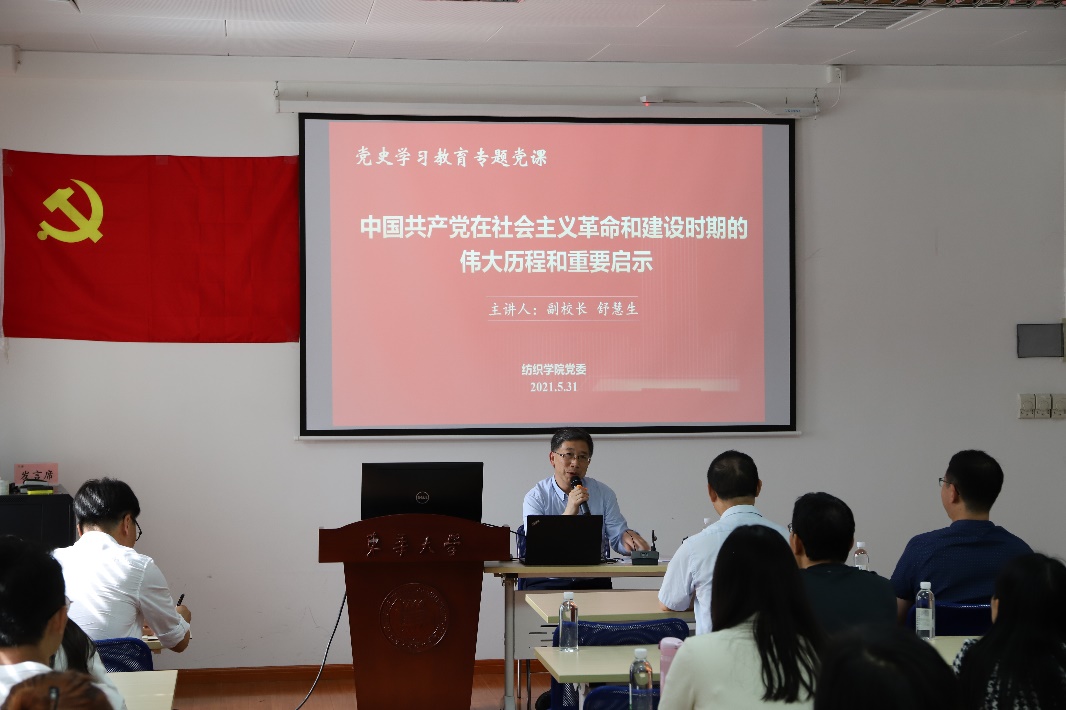 5月31日,副校长舒慧生来到欲漫涩 ,就“中国共产党在社会主义革命和建设时期的伟大历程和重要启示”主题,为欲漫涩 师生讲授党史学习教育专题党课。欲漫涩 班子成员、支部书记、系(室、中心)主任、青年教师、舒慧生副校长所联系基层党支部的全体党员参加了此次党课学习。