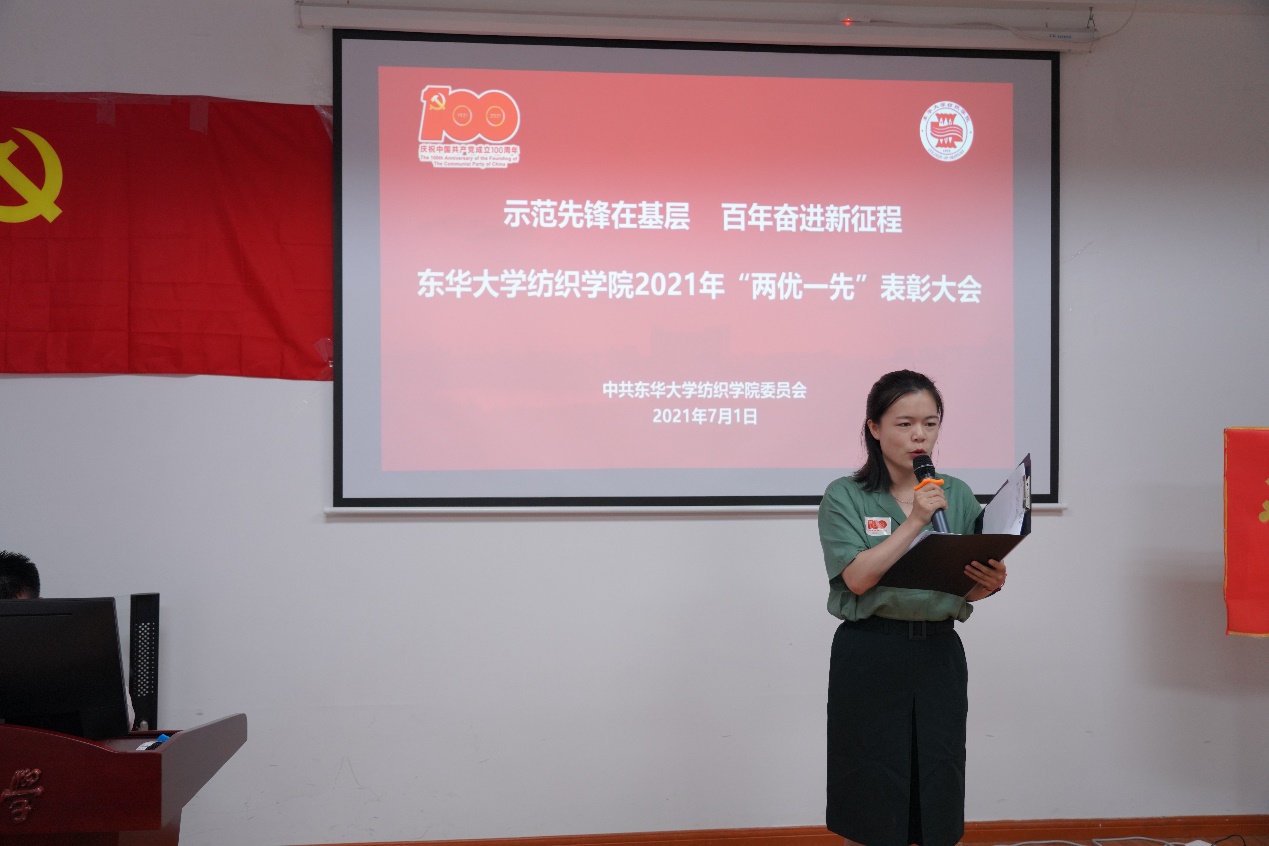 顾伯洪宣读《中共欲漫涩 委员会关于表彰优秀共产党员、优秀党务工作者、先进基层党组织的决定》。他表示,习近平总书记庄严宣告在中华大地上全面建成了小康社会,令人振奋。纺织工业现在是国民经济与社会发展的支柱产业、解决民生与美化生活的基础产业、国际合作与融合发展的优势产业,为全面建成小康社会做出重要贡献。我们要积极加强纺织科学与工程一流学科高质量建设,引领世界纺织教育和科技创新,为实现第二个百年奋斗目标添砖加瓦、不懈奋斗。