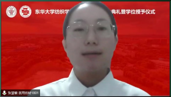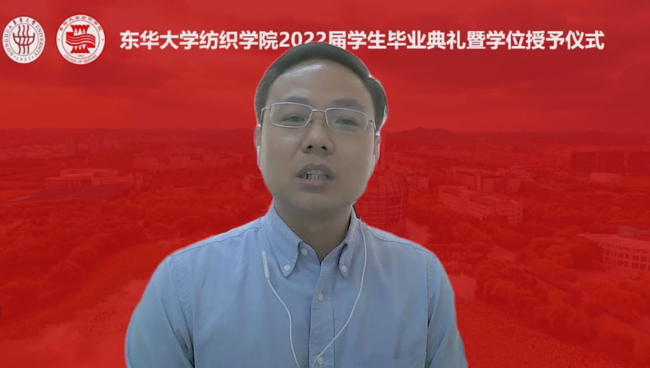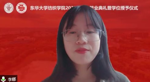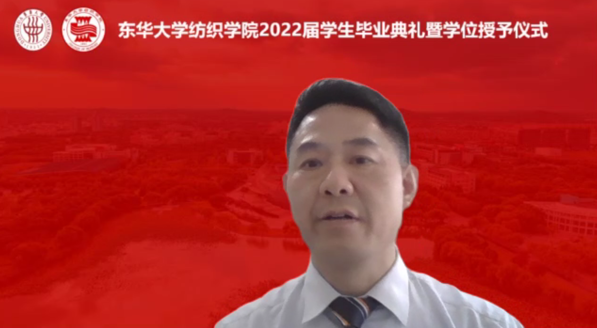 纺硕2005班潘真祯、纺材1802班蔡奇荣和医用纺材1801班张慧敏作为毕业生代表分别发言,他们表达了对母校培育、良师教诲、同学情谊的感恩,纷纷表示毕业后不论身处何地都不忘学校和欲漫涩 的期许,努力提升自我,在自己的青春赛道上脚踏实地、奋勇争先。卓越纺织1901班李娜作为在校生代表发言,她感谢众多优秀学姐学长的帮助和相遇,也祝福所有毕业生前途光明、鹏程万里。