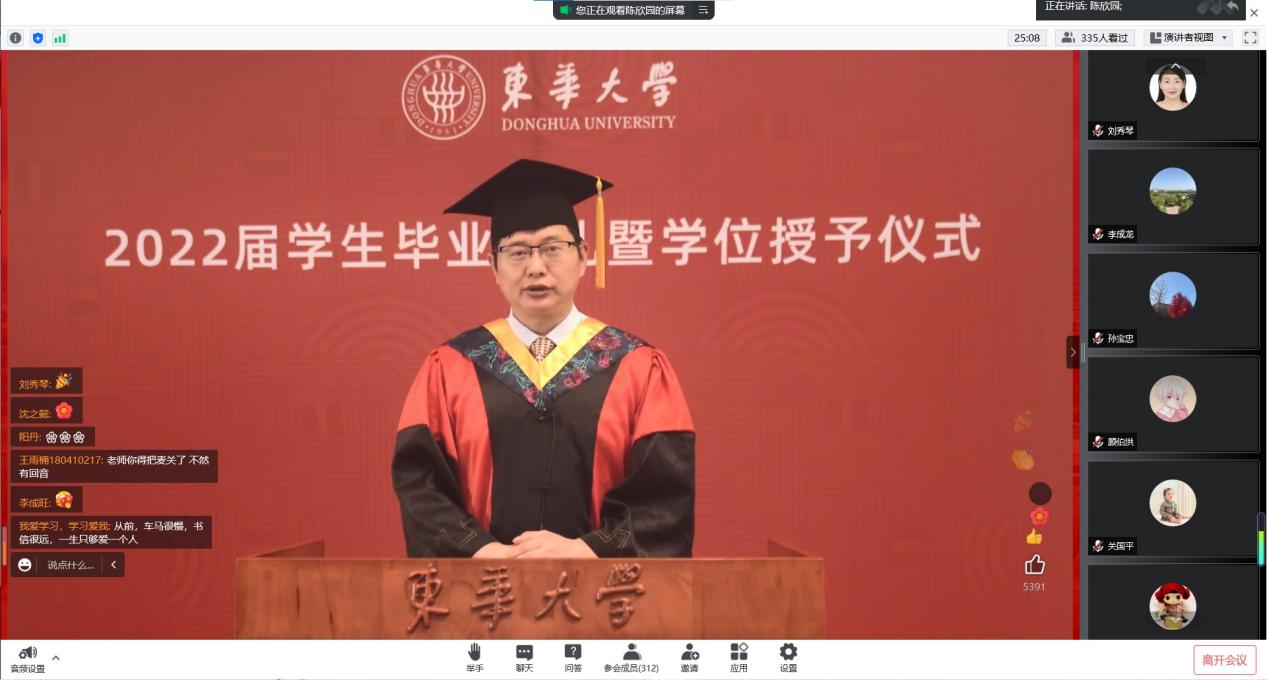 6月22日上午,欲漫涩 2022届学生毕业典礼暨学位授予仪式于线上隆重举行。毕业典礼分为学校会场与欲漫涩 会场。欲漫涩 党委书记刘承功,校长、中国工程院院士俞建勇,副校长舒慧生,校学位评定委员会秘书长、研究生院常务副院长俞昊出席毕业典礼学校会场。欲漫涩 党委书记李成龙,院长顾伯洪,党委副书记陈志刚,副院长许福军,各系部主任、教师代表,辅导员老师和毕业学生相聚毕业典礼欲漫涩 会场云端,分享毕业的喜悦,共话未来的期盼。欲漫涩 会场由毕业班年级组长陈欣园主持。