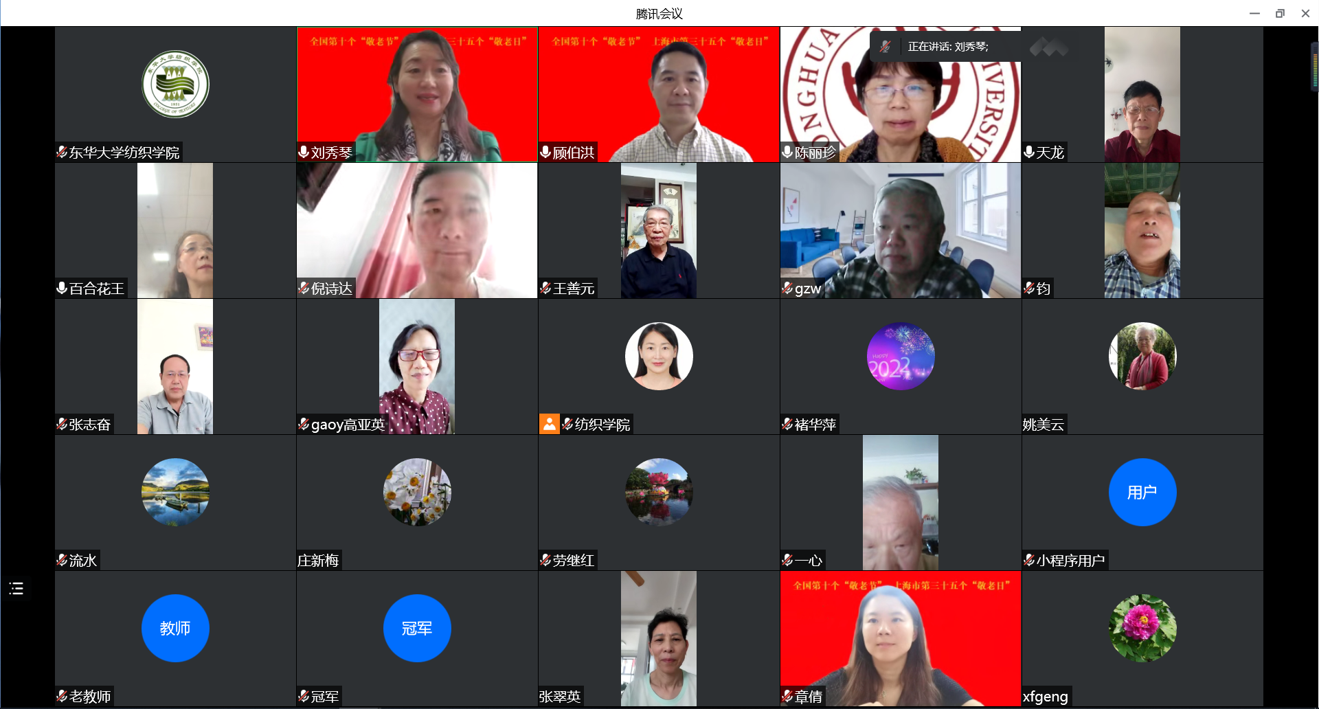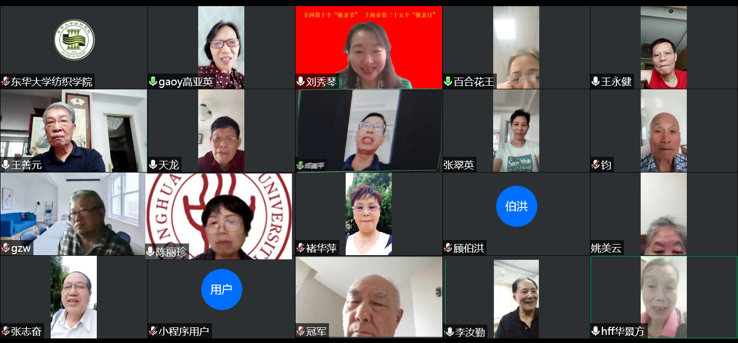 座谈会的最后,各位退休教师们在线上自由畅谈,合影留念,虽然由于疫情大家未能在线下欢聚一堂,但浓浓的节日氛围将大家紧密联系在一起。在重阳节到来之际,院长顾伯洪代表欲漫涩 由衷的祝福所有退休教师福如东海,寿比南山,阖家欢乐!